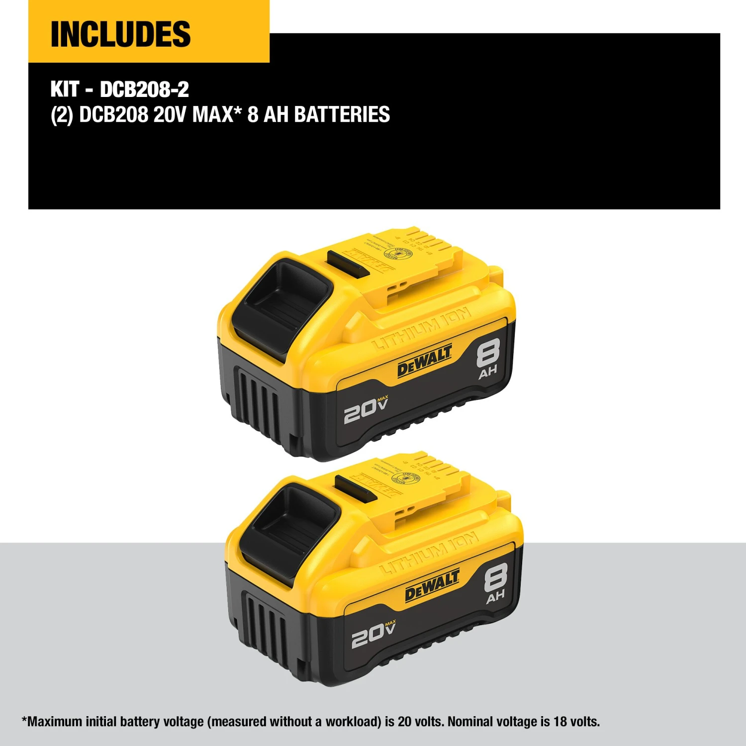 Includes: (2) DCB208 20V MAX* 8Ah Batteries
