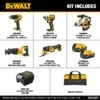 Includes: (1) DCD793B 20V MAX* Brushless Cordless 1/2-in Drill/Driver, (1) DCF787 20V MAX* Brushless Cordless 1/4-in Impact Driver, (1) DCS565 20V MAX* Cordless Brushless 6-1/2-in Sidewinder Style Circular Saw, (1) DCS382 20V MAX* Brushless Cordless Reciprocating Saw, (1) DCS356 20V MAX* Brushless Cordless 3-Speed Oscillating Multi-Tool, (2) DCB205 20V MAX* 5Ah Battery, (1) Charger, (1) Contractor Bag