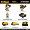 Includes: (1) DCS334 20V MAX* XR® Brushless Jig Saw, (1) DCW210 20V MAX* XR® Brushless Random Orbital Sander, (1) DCW600 20V MAX* XR® Brushless Compact Router, (1) Charger, (1) Contractor Bag, (1) DCB205 20V MAX* XR® 5.0Ah Battery, (1) DCB203 20V MAX* XR® 2.0Ah Battery