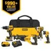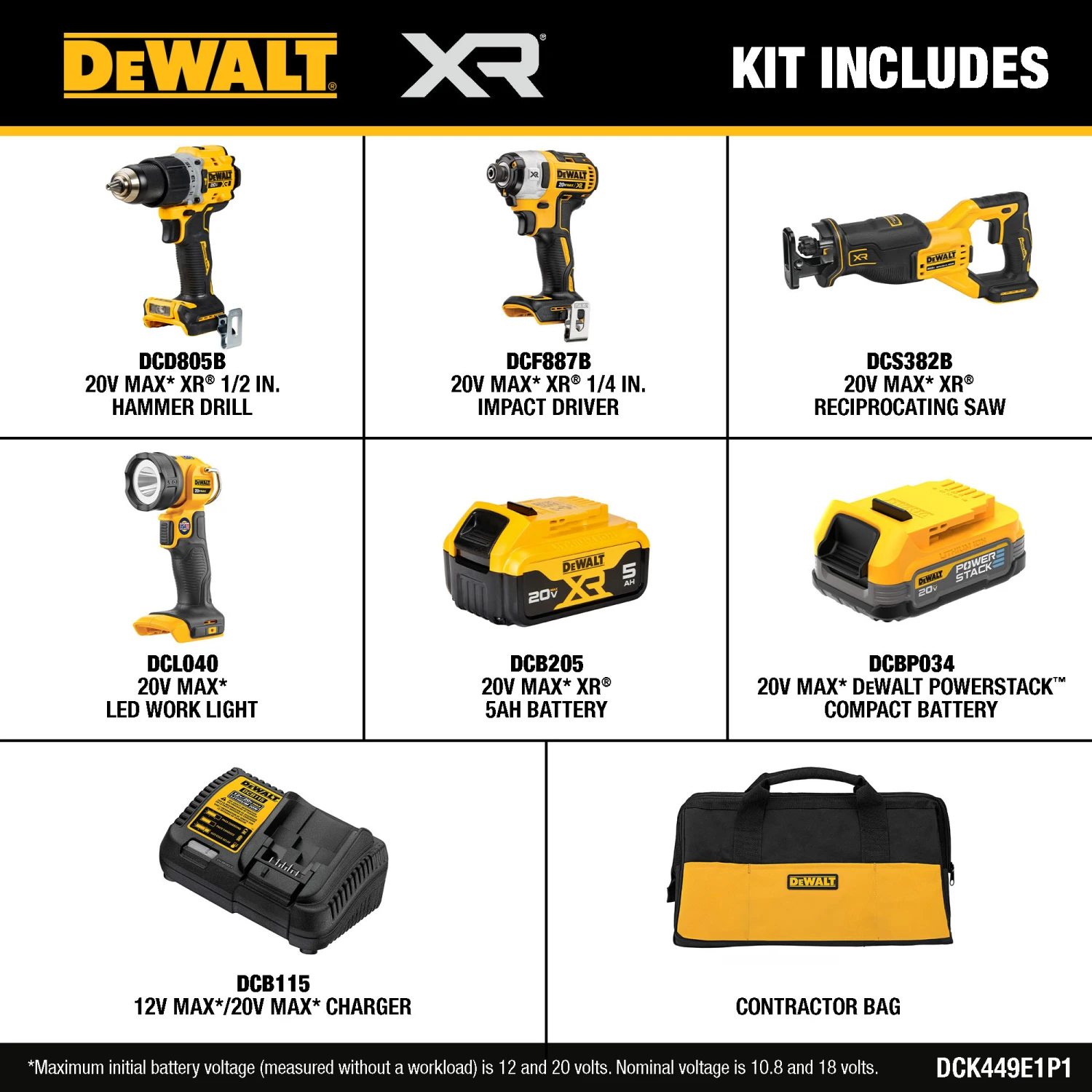 DEWALT 20V MAX XR Brushless 4-Tool Combo Kit With POWERSTACK Compact Battery, 5.0Ah Battery, Charger And Tool Bag