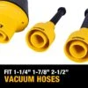 Fits vacuum hoses 1-1/4 inch, 1-7/8 inch, 2-1/2 inch