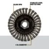 4-In x 5/8-in -11 HP, 0.020, Stainless Stringer Wire Wheel, 5/8-in-11 Arbor, Stringer Bead, Highly Specified Wire Grades Are Constructed With Internal Holding Plate To Ensure Consistency and Safety, Constructed For Even Balance Which Provides Smooth Performance, Knotted Wire Is For Heavy Material Removal, Crimped Wire Provides Flexibility For Light Removal Of Rust and Paint and General Cleaning.