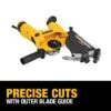 Outer blade guide on the shroud indicates blade direction for a precise cut