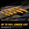DEWALT® taper back bi-metal reciprocating blade. All wood cutting applications common with framing, plumbing, demolition and general contractors. Wood, nail embedded wood, PVC.