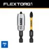 FLEXTORQ® bits are engineered for durability. This latest generation from DEWALT redefines fitment and performance with overhauled tip geometries. DEWALT’s newest FLEXTORQ® PH2 bits deliver 100% more screws per bit, on average, versus previous generation of DEWALT FlexTorq® screwdriving PH2 bits. Every FLEXTORQ® bit features a FLEXTORQ® Zone designed to absorb impact for longer life. Save time and find the right bit with new highly-visible laser-etched size. Each FLEXTORQ® bit is IMPACT READY™ with a ¼-In hex shank for use in impact drivers and drills. The included magnetic sleeve is part of the 10X magnetic screw lock System for fastener retention which minimizes drops and reduces wobbling.