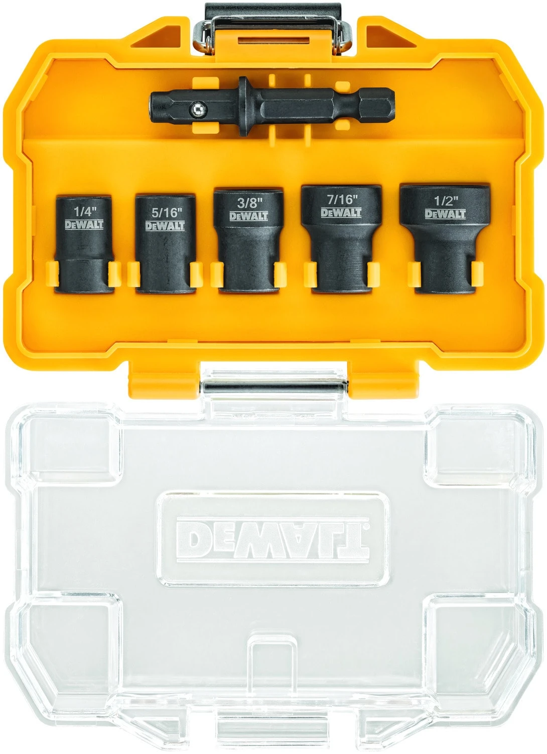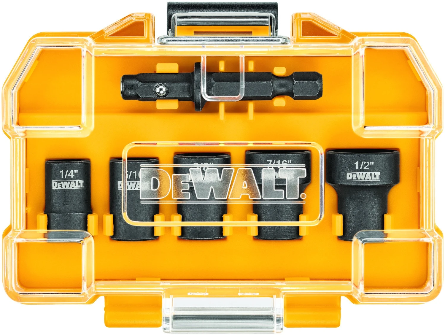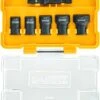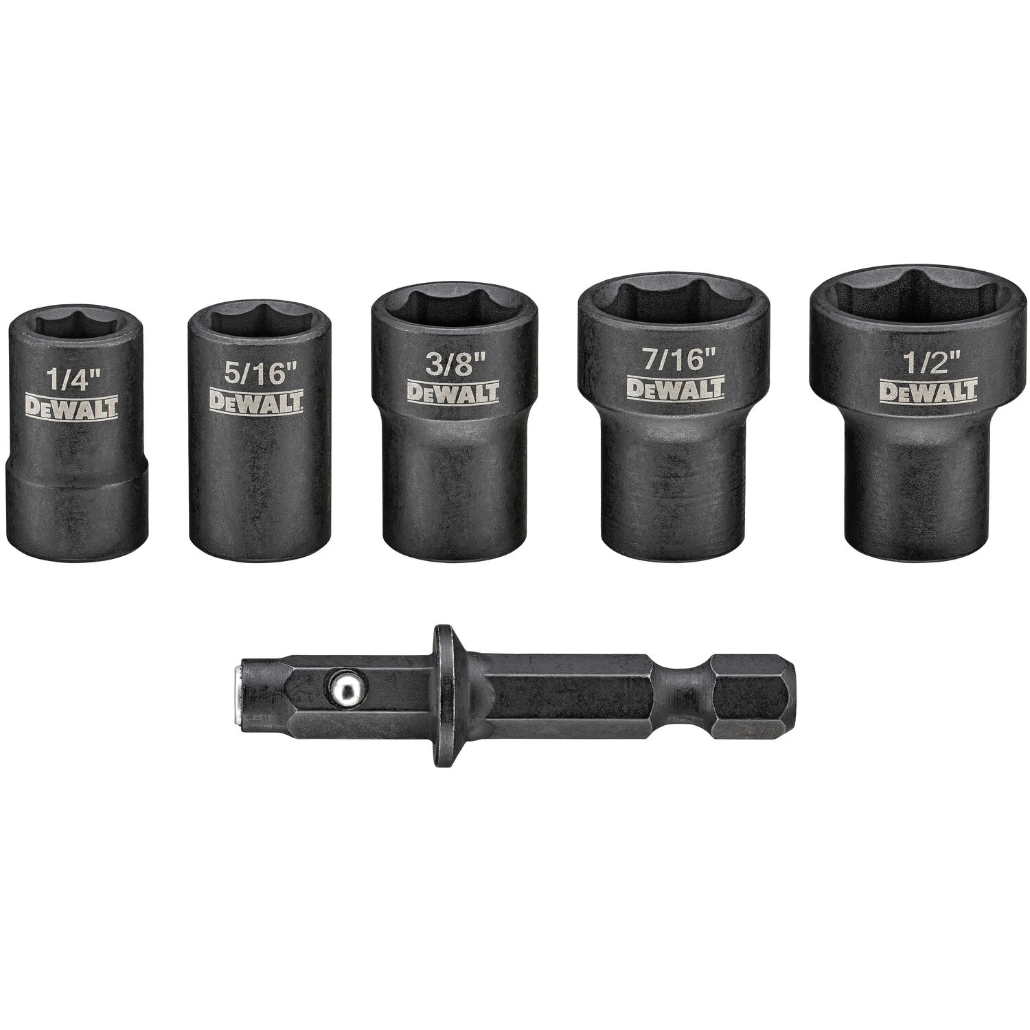 With each piece manufactured from shock-resistant tool steel, the DEWALT IMPACT READY 5-piece nutsetter impact driver bit set makes for a valuable addition to your toolbox. Apart from their make, the nut drivers in this 5-piece set are detachable and cleanable. When detached from the shank, you can clean the debris that has accumulated in the driver, enhancing its lifespan. The drivers are also equipped with magnetic screw lock technology, so they can hold your screw and bolt for easier one-handed or overhead fastening applications. With a universal shank that fits detachable nut drivers between 1/4-in to 1/2-in, this set is versatile enough for different applications. Get yours at Lowes.com today.
