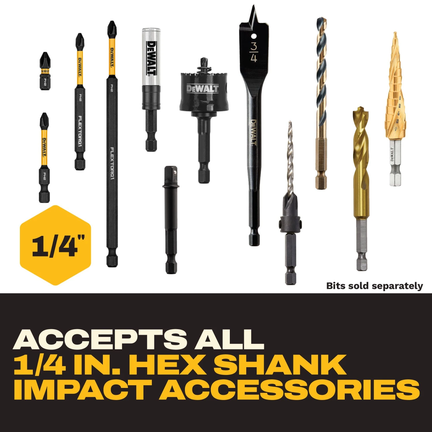 Accepts all 1/4-in hex shank impact accessories