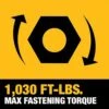 Complete a wide variety of fastening applications with 1030 ft-lbs of max fastening torque and 1400 ft-lbs of max breakaway torque