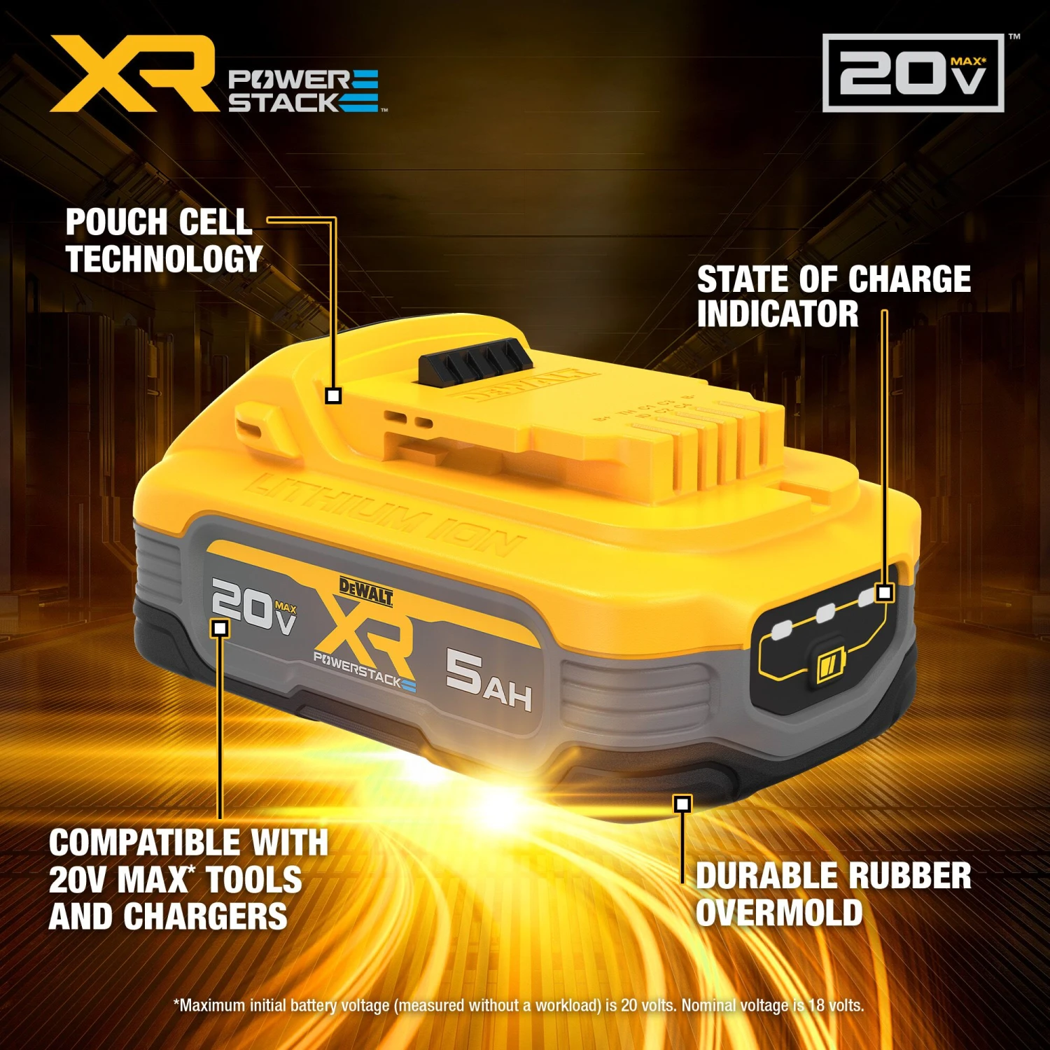 Includes: (1) DCBP034 20V MAX* XR® POWERSTACK™ Compact Battery, (1) DCBP520 XR® POWERSTACK™ 5Ah Battery