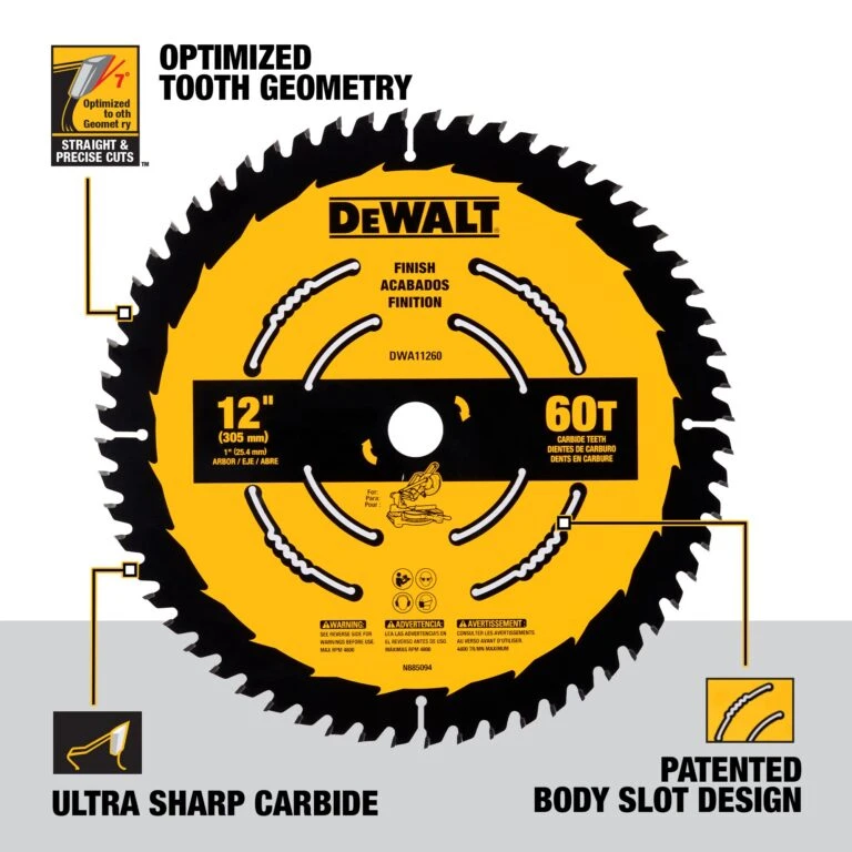 DEWALT Large Diameter Saw Blades 12-in 60 -Tooth Fine Finish Tungsten Carbide-tipped Steel Miter Saw Blade Individual